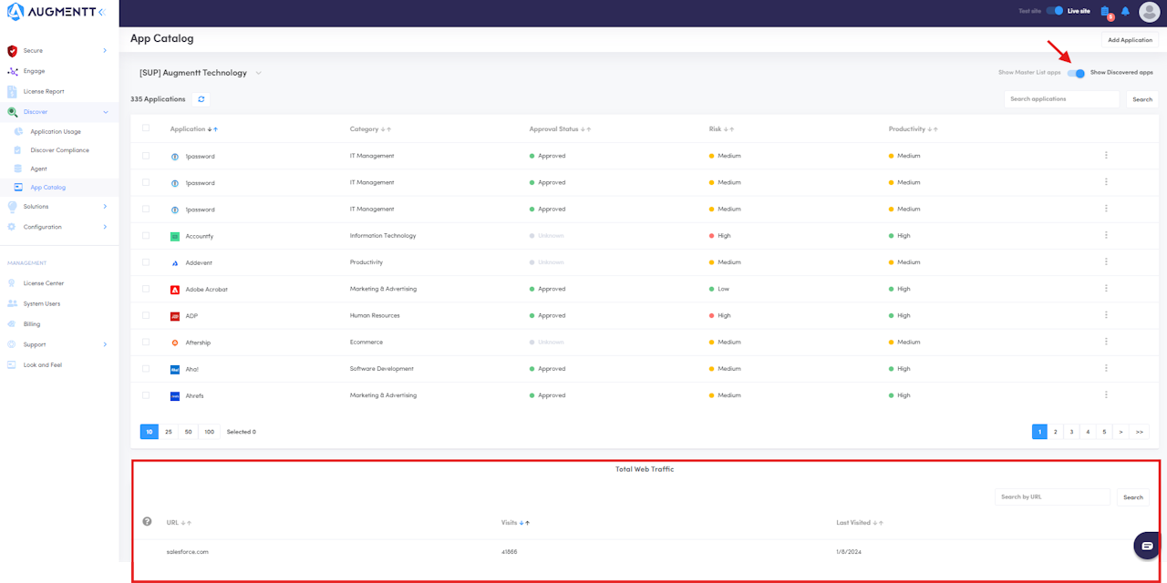 Any apps discovered that are not yet classified will be shown in the Total Web Traffic section below.