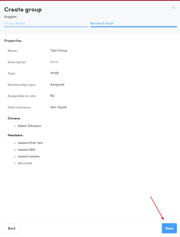 Select the type (M365 / Security) and enter your group details.