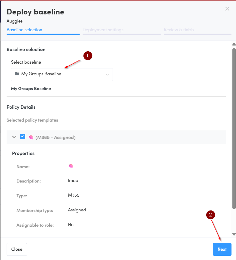 Select the Baseline to deploy, click Next