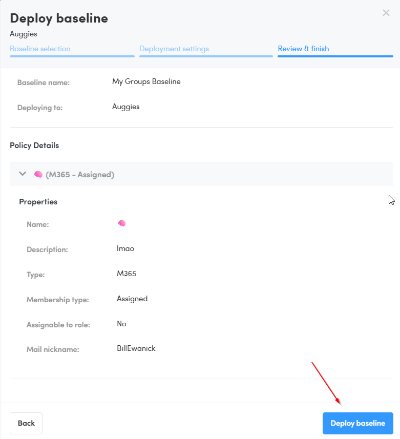 Review and click Deploy Baseline