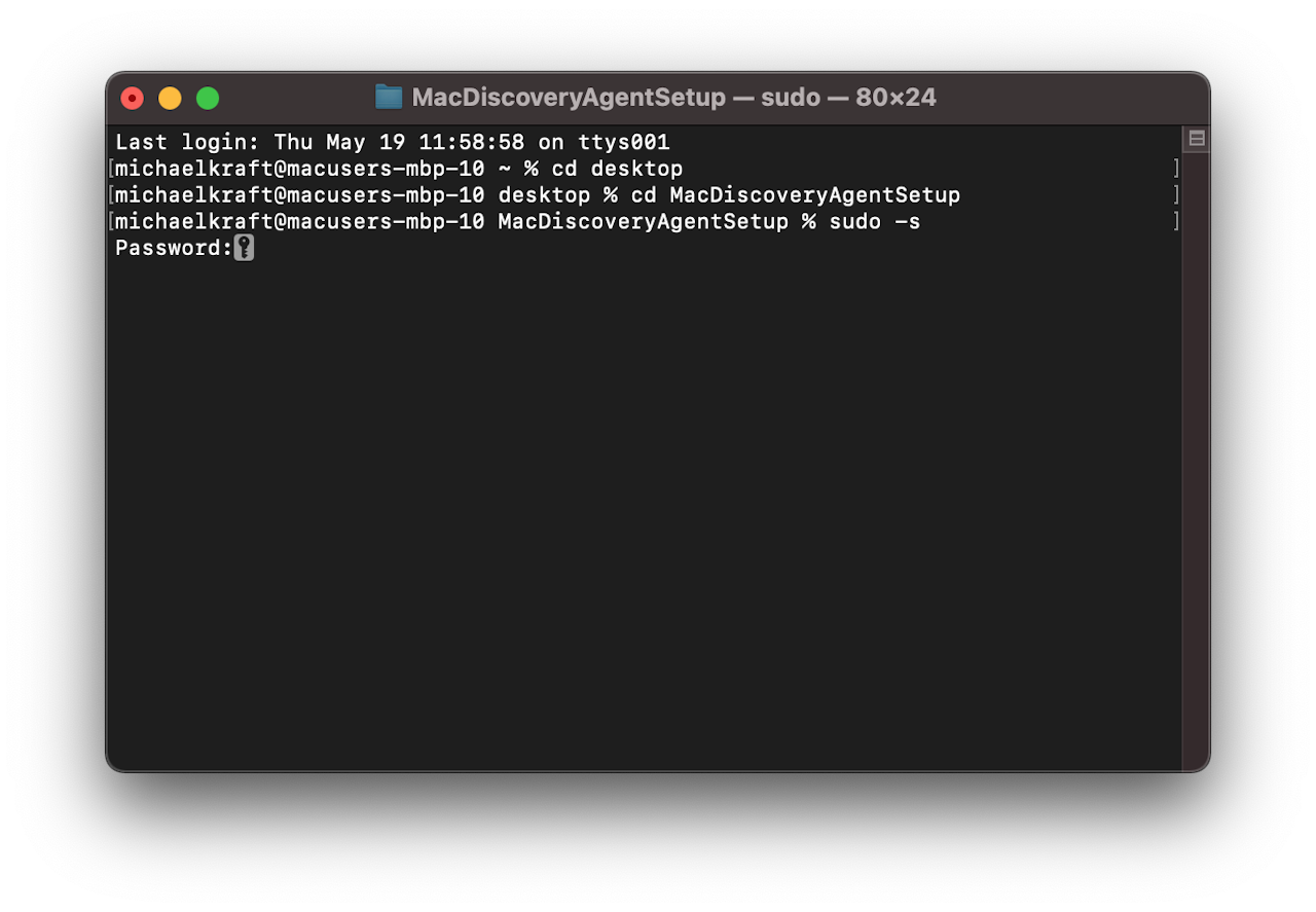 4. Type sudo –s and put in your admin password