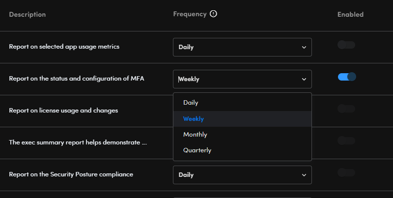 Choose which reports should be enabled, the frequency they should be put out (daily, weekly, monthly or quarterly), and the email address to which they should be sent.